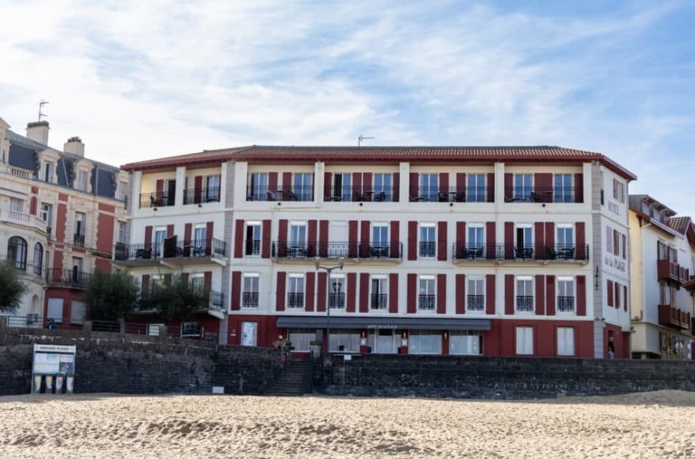L'Hôtel de la Plage à Saint-Jean-de-Luz est situé à quelques pas des magnifiques plages de la côte basque. Cet établissement offre des chambres confortables et élégamment décorées, avec vue sur l'océan, parfaites pour se ressourcer après une journée bien remplie. Un séjour ici promet à la fois détente et inspiration.